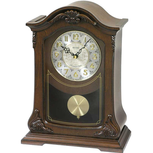 List Price $285.00. Every hour on the hour this clock plays Westminster Chime with hour strike, or one of 16 Popular or 3 Christmas melodies. It also has the option to have Westminster chime quarterly. Pendulum swings continuously. Night time shut off option. Volume Control.