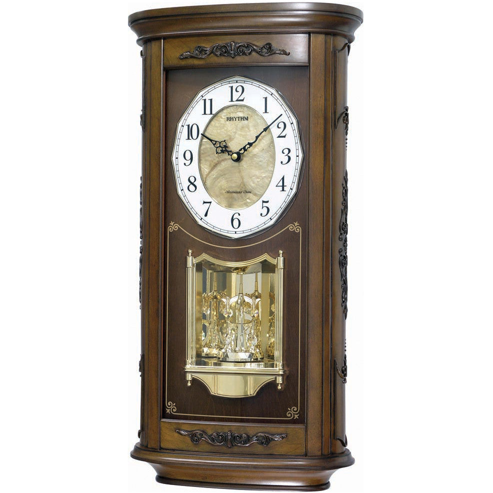 The WSM Rosemont bares a beautiful array of woodwork, design, and elegance. The most obvious of all is the beautiful mother of pearl on the center of the dial. Beautifully equipped with an 8 Swarovski pendulum and signature WSM movement that plays one of 9 melodies or a Westminster chime (hourly or quarterly). It also has an auto night shut off feature. Clock is battery quartz operated.